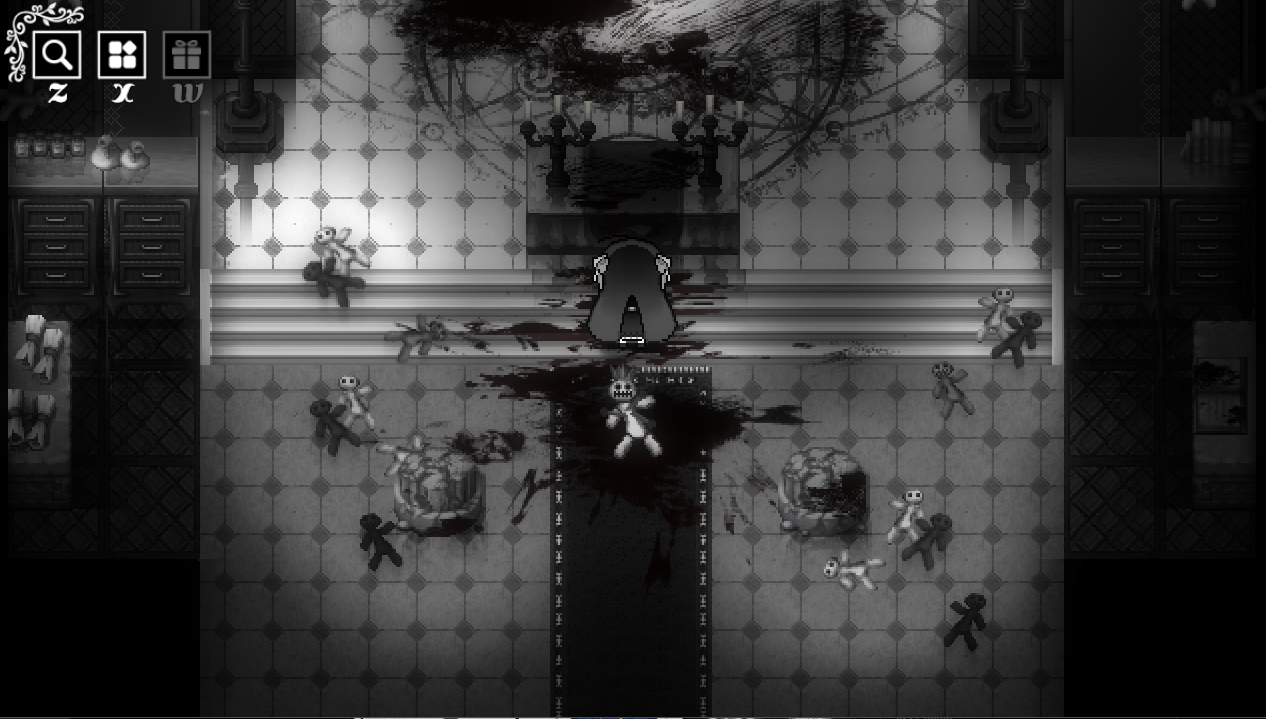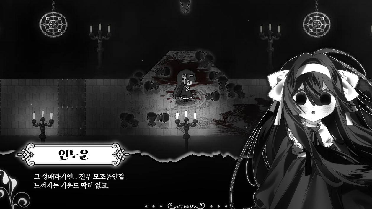 별개로, 바닥에 문을 중점으로 흩뿌려진 피는 그간 신도들을 잡아먹은 흔적이다.